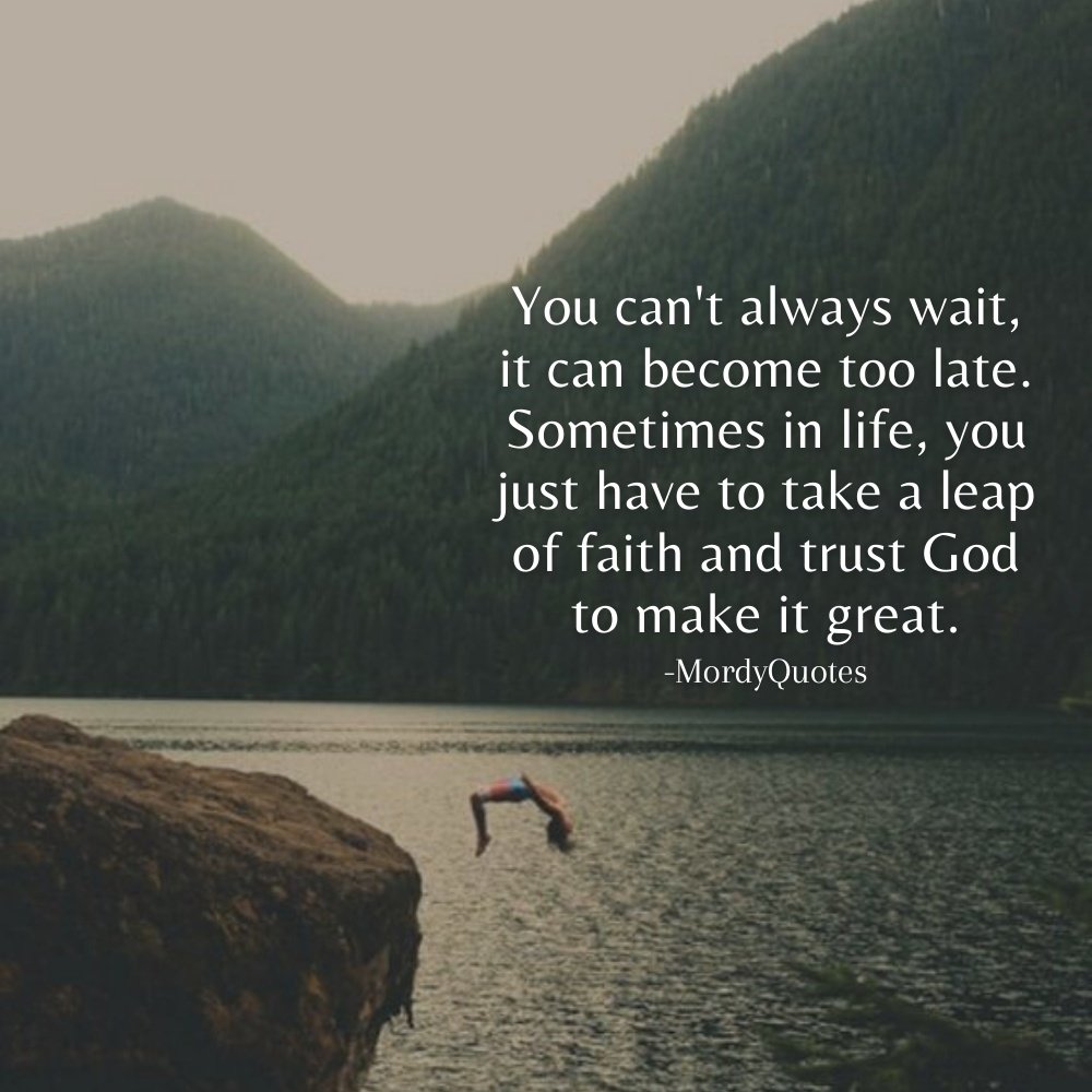 Mordyquotes On Twitter You Can T Always Wait It Can Become Too Late Sometimes In Life You Just Have To Take A Leap Of Faith And Trust God To Make It Great Mordyquotes